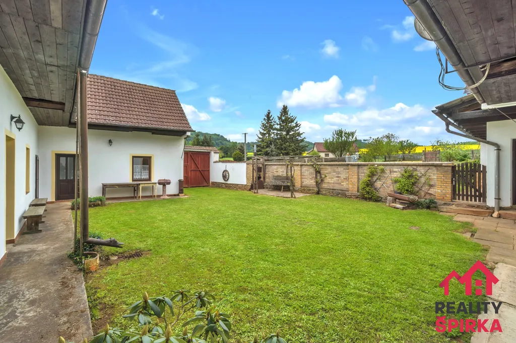 Dvorek ve tvaru „U“, ve kterém zaznívá jen bzučení včel a praskání dřeva v udírně. Za ním užitná zahrada s ovocnými stromy, zděná kůlna, dílna, garáž i vlastní studna. Celková výměra pozemků je 9.722 m² – prostoru je tu víc než dost.