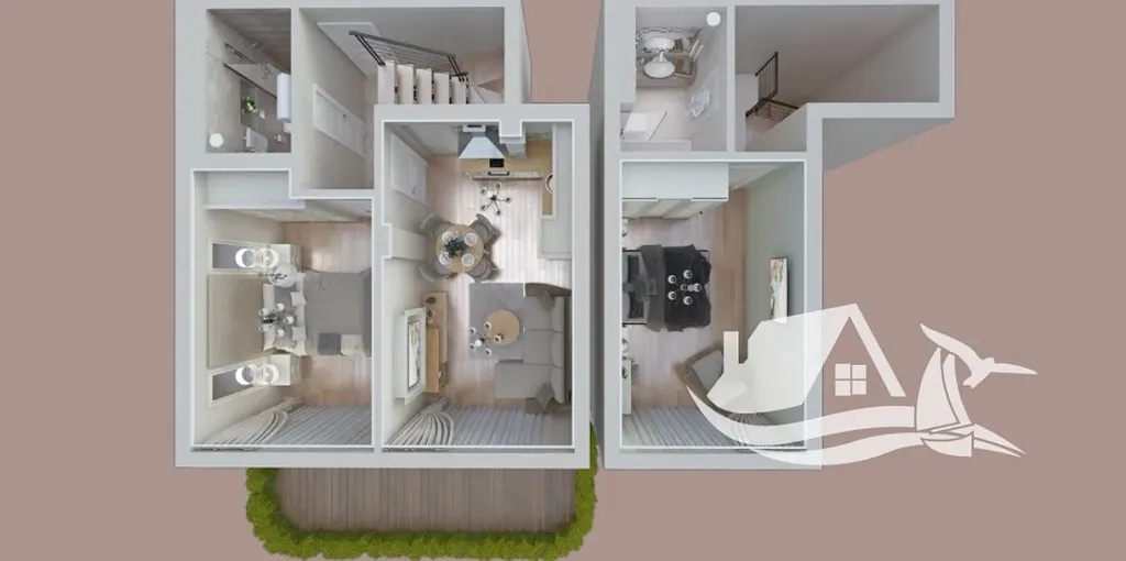 Samotný apartmán je řešen jako dvoupodlažní mezonet a nabízí velkorysý prostor i příjemné soukromí. Celková podlahová plocha činí 92,95 - m², k tomu náleží prostorná terasa o velikosti 15 - m², která se nezapočítává do poplatku za údržbu. Díky přímému vstupu na terasu z obytné části se byt přirozeně otevírá směrem k bazénu a společným zahradám.
