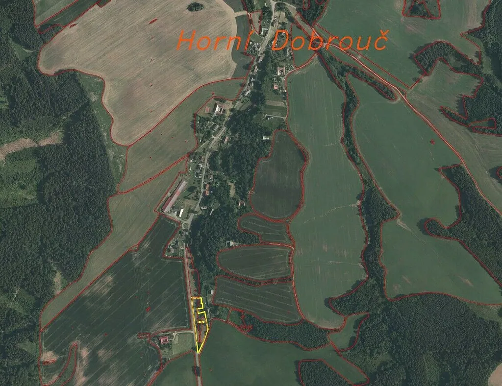Nabízíme k prodeji pozemek o výměře 6 634 m² v Horní Dobrouči. Pozemek se nachází v jižní části obce u silnice, směrem na Lanškroun. Z velké části je obhospodařován a zapsán do veřejného registru půdy LPIS s možností uplatnění dotací. V katastru nemovitostí je veden jako trvalý travní porost.