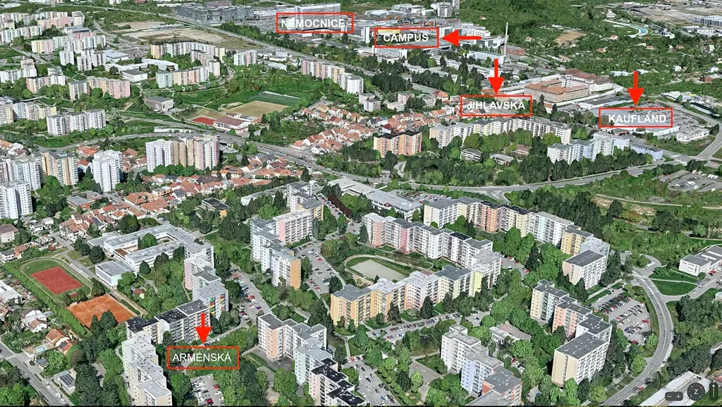 Lokalita: Arménská, Brno-Bohunice, panelový, revitalizovaný dům s výtahem.
