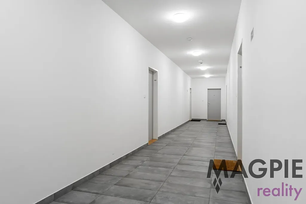 Byt sestává ze zádveří (4,6 m2), z něhož vstupujeme do koupelny s WC (4,4 m2) a praktické komory (2,3 m2), kde je umístěna příprava na pračku a případně sušičku. Ze zádveří pak projdeme do obou obytných místností. Obývací pokoj (20,4m2) je vybaven moderní kuchyní na míru vybavenou značkovými spotřebiči. Výhodou jsou velká okna a vstup na lodžii. Druhou obytnou místností je ložnice (13,9m2) s dalším vstupem na lodžii, která poskytne výhled do zeleně. V ložnici je oproti fotografiím umístěna na míru vyhotovená praktická vestavěná skříň.