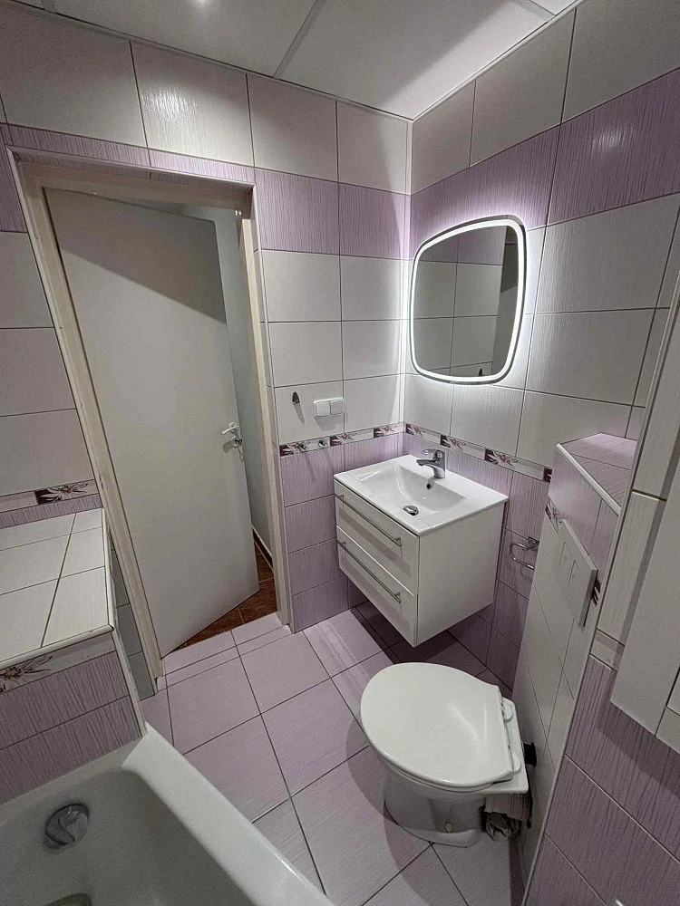 Nabízíme dlouhodobý Pronájem kompletně zrekonstruovaného bytu 2+1 v os.vlastnictví o velikosti 44m², v klidné lokalitě Ostravy Poruby na ulici Opavská. Panelový dům s výtahem umístěn mimo hlavní třídu, poblíž koupaliště Sareza. Bytová jednotka umístěna v 2/6NP. Interiér bytu laděn do béžovo bílých odstínů. V chodbě vestavné skříně a botník. Kuchyně s novou kuchyňskou linkou do tvaru L , se světelnou rampou, vše v bílém provedení s vestavnými spotřebiči ( myčka nádobí zn.Electrolux, vestavná multifunkční trouba zn.Amica, plynový ohřev zn. Schott, nachystán volný prostor pro mikrovlnnou troubu a lednici ) . K dispozici také kuchyňský stůl na míru barevně laděný k lince. Na podlaze dlažba. V celém bytě snížené sádrokartónové stropy s bodovým osvětlením. Obývací pokoj i ložnice s plovoucími podlahami. Do ložnice s velkými vestavnými skříněmi, samostatný vstup z chodby. V celém bytě žaluzie a sítě proti hmyzu. V okně sušák na prádlo. Koupelna v růžovo bílém provedení s vanou a wc dohromady. Připravena přípojka na pračku. Umyvadlo usazeno v koupelnové bílé skříňce. Zrcadlo s osvětlením. Dům po kompletní revitalizaci (listová okna, fasáda, zateplení, vstup do domu, schránky ). K bytu náleží sklepní kóje. Byt má bezpečnostní vstupní dveře . Nájem 10.900,- + služby 3.086,- na 1 osobu tj.( teplo, TUV, SUV, výtah, osvětlení společných prostor, úklid společných prostor ). Elektřina a plyn samostatně na nájemce. Vratná jistina 22.000,-.Kč Provize RK 11.000,-Kč. Volný ihned. MHD 5 minut chůze. V okolí veškerá občanská vybavenost. Pouze pro klienty bez zápisu v registru Exekucí a s čistým trestním rejstříkem.