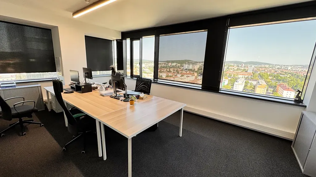 Prostory v budově jsou plně klimatizované, prosvětlené denním světlem a z 17. podlaží se otevírá nádherný výhled na panorama Brna.