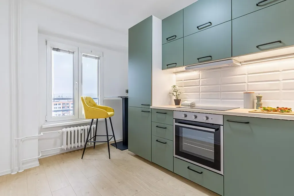 Disponuje moderně zařízenou kuchyní s veškerými spotřebiči a prostornou koupelnou s vanou a toaletou. Byt nabízí skvělé panoramatické výhledy z 9.patra. Pronajímá se bez vybavení.