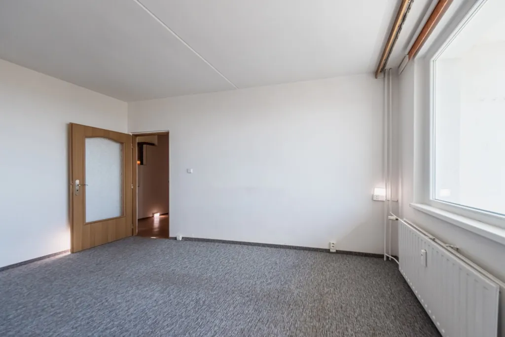 Byt o podlahové ploše 60 m² patří mezi tzv. menší dispozice 3+1, nicméně jeho velkou výhodou je okno v nejmenším pokoji, díky kterému je celý prostor světlý a působí příjemně.