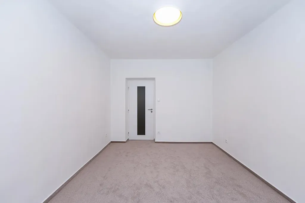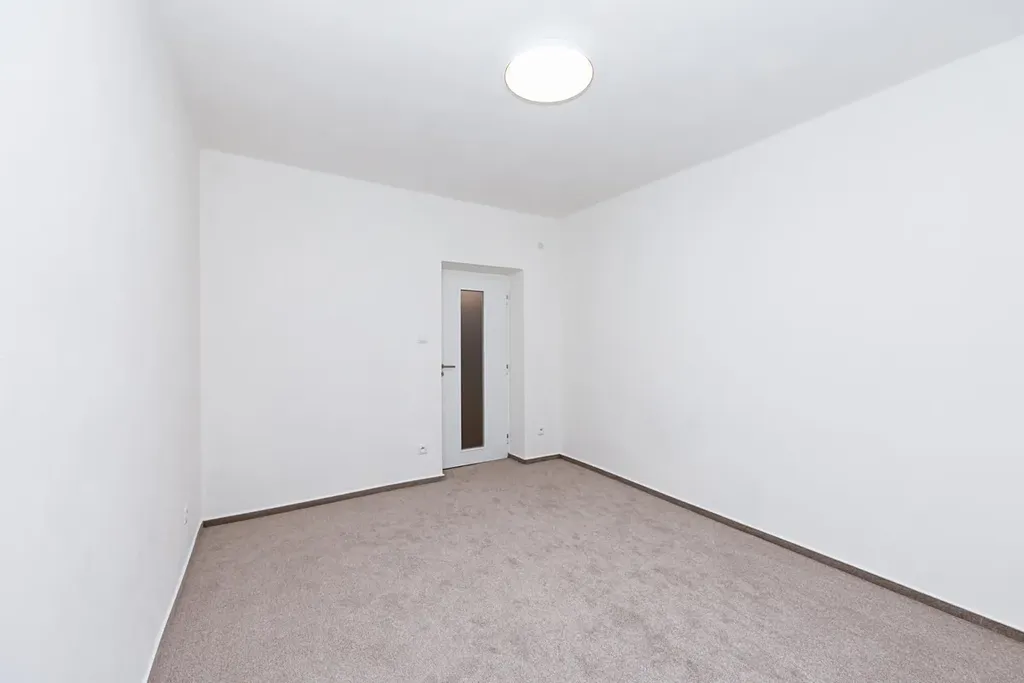 Kuchyně je vybavena novou moderní kuchyňskou linkou včetně spotřebičů (lednice s mrazákem, myčka, sklokeramická varná deska a elektrická trouba). Byt je jinak nezařízený, připravený k dovybavení dle vlastních potřeb. Na podlahách jsou koberce, v kuchyni a koupelně, na toaletě dlažba.