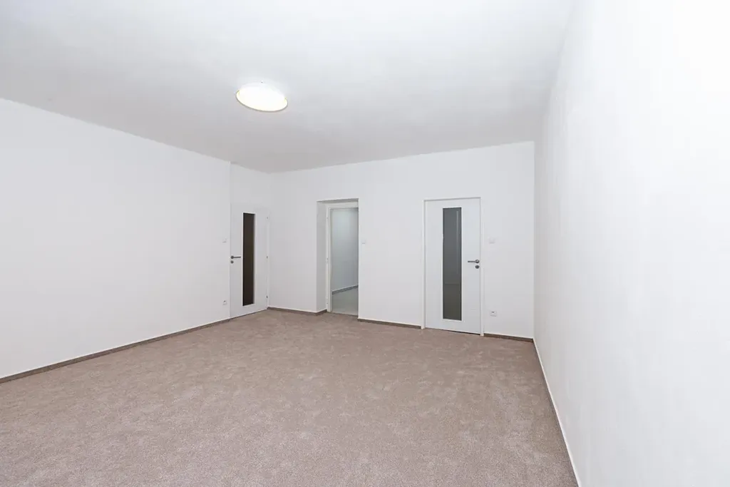 Nabízíme k podnájmu světlý a prostorný byt 3+1 o velikosti 71 m v 1. patře činžovního domu bez výtahu v ulici Jeremenkova, Praha 4. Byt se nachází v domě se zvýšeným přízemím, takže je situován výše než běžné první patro.