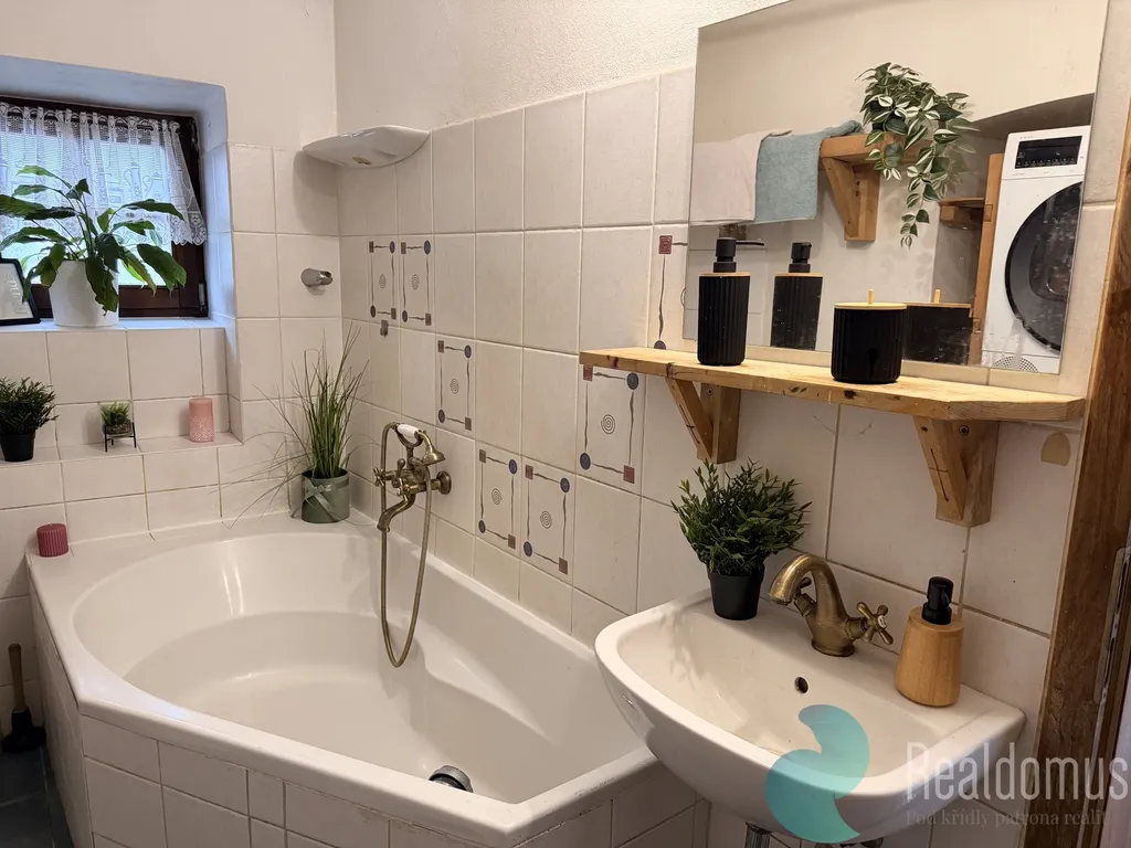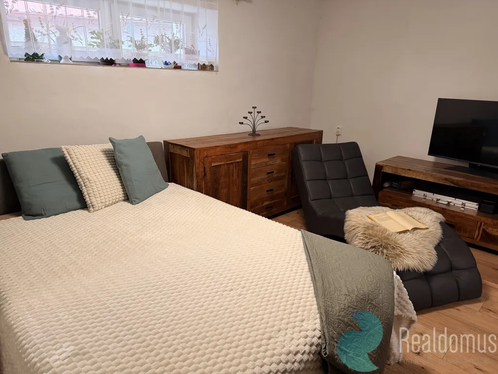 Stará kamenná stavba před rekonstrukcí, ale s možností okamžitého bydlení nabízí dispozici bytu 2+1 o výměre 78m2 a je vytápěna krbem. Jedná se o obývací pokoj, dětský pokoj, kuchyni, koupelnu, komoru a sklad. V přípravě je další místnost v 1NP a také možnost obyvatelného podkroví.