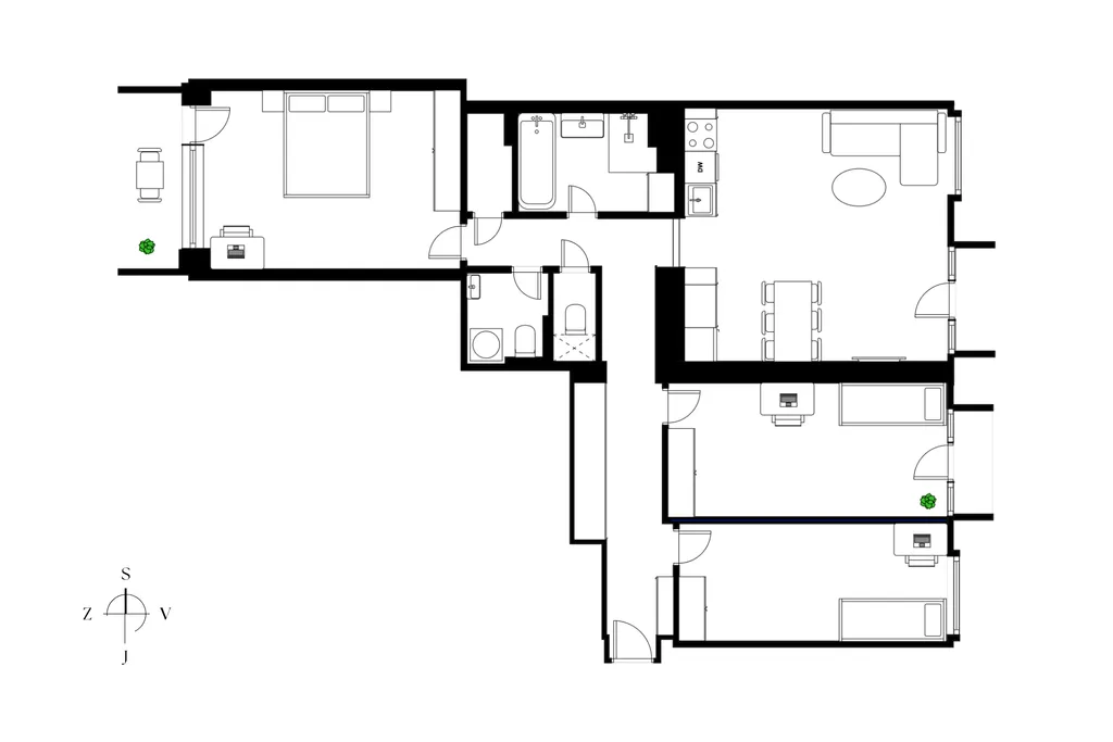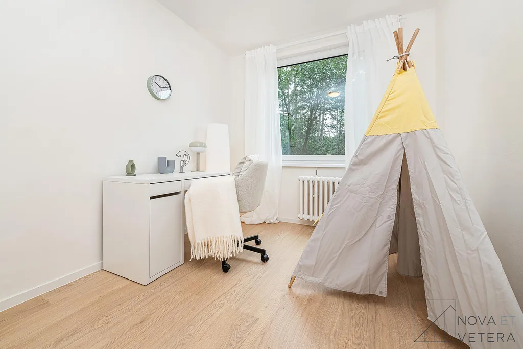 Orientace na východ a západ zajišťuje dostatek denního světla během celého dne.Vytápění je řešeno centrálně dálkově.