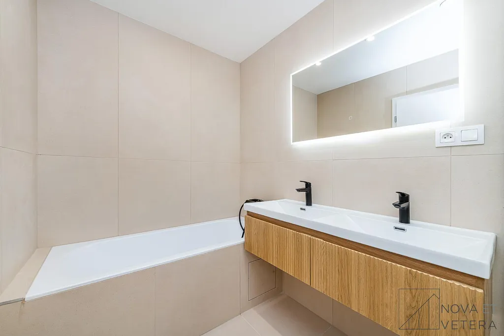 Byt právě prochází kompletní a kvalitní rekonstrukcí, která zahrnuje nové rozvody elektřiny, vody a odpadů, nové podlahy, moderní obklady a dlažbu značky Marazzi, koupelnu se sprchovým koutem se sanitou Grohe a také novou kuchyňskou linku se spotřebiči Gorenje s prodlouženou pětiletou zárukou. Díky tomu bude byt připraven k okamžitému nastěhování bez dalších investic.