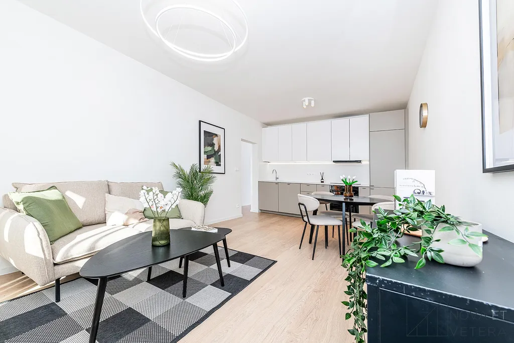 Byt právě prochází kompletní a kvalitní rekonstrukcí, která zahrnuje nové rozvody elektřiny, vody a odpadů, nové podlahy, moderní obklady a dlažbu značky Marazzi, koupelnu se sprchovým koutem a sanitou Grohe a také novou kuchyňskou linku se spotřebiči Gorenje, na kterou je poskytována prodloužená záruka 5 let.
