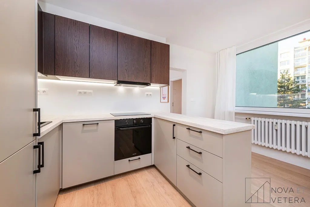 Byt právě prochází kompletní a kvalitní rekonstrukcí, která zahrnuje nové rozvody elektřiny, vody a odpadů, okna, moderní podlahové krytiny, moderní obklady a dlažbu italské značky Marazzi a koupelnu se sanitou značky Grohe. Součástí bude také zcela nová kuchyňská linka vybavená vestavnými spotřebiči značky Gorenje s prodlouženou zárukou 5 let.