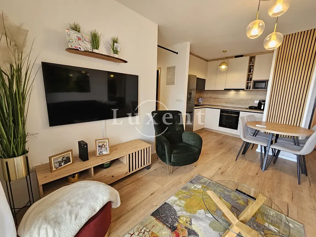 Dispozičně byt zahrnuje dvě ložnice, koupelnu, chodbu a předsíň, dále prostorný obývací pokoj propojený s kuchyní a jídelním koutem. Z obývací části je vstup na terasu, ze které se otevírá nádherný výhled na Zadarský kanál, moře a přilehlé ostrovy, což z ní činí ideální místo k odpočinku.