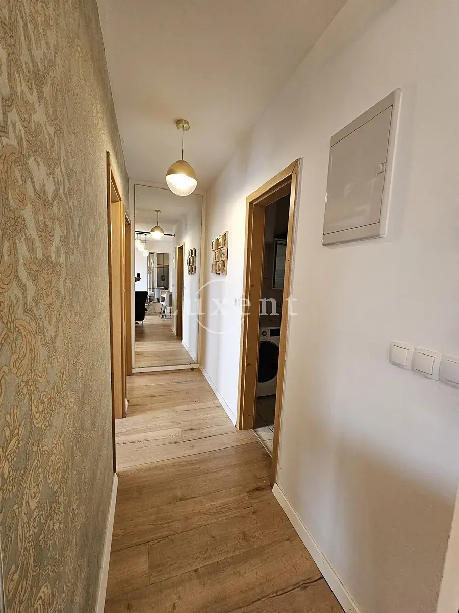 Byt je kompletně zařízený, vybavený klimatizací pro vytápění i chlazení, vestavěnými skříněmi a moderní koupelnou se sprchovým koutem. Součástí prodeje je také garážové parkovací stání o výměře 12 m².