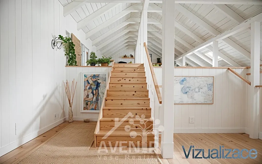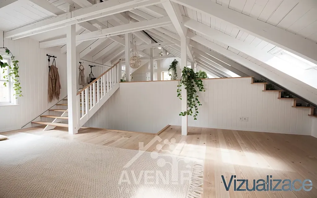 Najdete, zde také samostatný vstup do podkrovních prostorů. Další vstup na podkroví je přímo z garáže.
