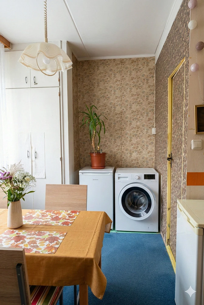 Byt je v původním stavu (umakart, hliník), ale má plastová okna – ideál pro kreativní rekonstrukci a přidání hodnoty