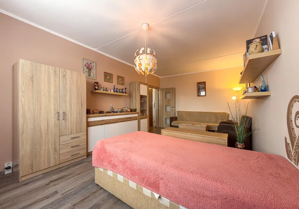 Součástí prodejní ceny je kompletní vybavení a nábytek, jak je patrné z fotografií. Byt je připravený k okamžitému prodeji a ihned po převodu členských práv je možné jej bez dalších investic plnohodnotně užívat k bydlení.