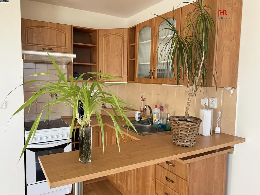 Nabízíme k pronájmu velmi pěkný byt 2kk 45,1 m2 včetně zasklená lodžie 2,6 m2 a komory 1,1 m2 v uzavřeném společném prostoru na patře. K bytu náleží sklepní kóje v 1. NP 1,5 m2. Byt se nachází v 7. NP panelového domu po celkové rekonstrukci. Orientace bytu na západ. Čistá plocha bytu bez lodžie, komory a sklepní kóje je 41,6 m2. Dispozice 2kk: pokoj s kk (20,5 m2), pokoj (12,2 m2), předsíň s vestavěnou skříní (5,7 m2), koupelna se sprchovým koutem a WC (3,2 m2). Plastová okna, zděné jádro bytu, nové rozvody (voda, elektro). Podlahy – plovoucí, předsíň a soc. zař. dlažba. Byt má bezpečnostní vstupní dveře. Vytápění a ohřev teplé vody dálkové, plechové radiátory s digitálními měřiči. Nová kuchyňská linka se spotřebiči. Uzavřený společný prostor pro 3 byty na patře. Udržované a čisté společné prostory domu. Dům je po komplexní rekonstrukci, zateplení, opravená střecha, zrekonstruované společné prostory, vstup na čip. Byt se nachází v 7. NP z celkových 13 v domě s dvěma novými výtahy. Parkování zdarma před domem. V místě je veškerá občanská vybavenost, aquapark, MŠ, lékař apod. Velmi dobré dopravní spojení do centra. Nájemné 20.000,- Kč, poplatky 4.000, - Kč. PENB tř. B