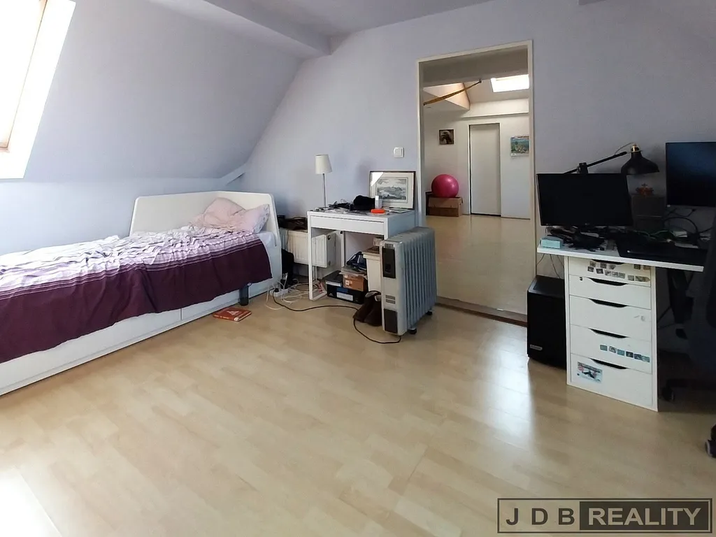 Nabízíme k pronájmu jednu ze dvou bytových jednotek o velikosti 103 m² a dispozici 4+kk v rodinném domě v centru Roztok u Prahy. Dům se sedlovou střechou z roku 2000 se nachází na pozemku o celkové výměře 622 m². Do bytové jednotky je přístup po vnějším schodišti, což zaručuje absolutní soukromí. Bytová jednotka disponuje kuchyní s jídelním koutem a kuchyňskou linkou s elektrickým sporákem, troubou a myčkou, velkým obývacím pokojem, koupelnou s vanou a wc, dalším samostatným wc, dalšími dvěma pokoji a šatnou (komorou). Vzhledem k dostatečnému množství střešních oken je celý byt velice dobře prosvětlen.