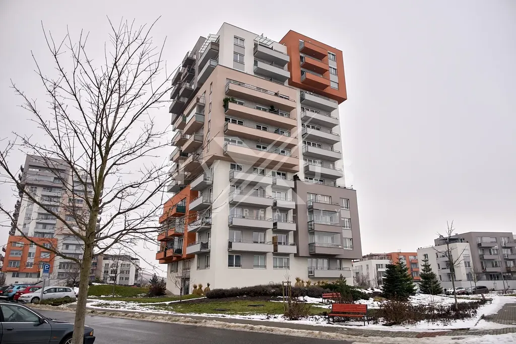 Dispozice bytu nabízí obytný prostor s kuchyňským koutem o výměře 26,8 m², vstupní chodbu 5,5 m² a koupelnu s WC 3,6 m². Součástí bytu je balkon o velikosti 4,4 m² s příjemným výhledem a k bytu náleží také sklep 3,3 m². Celkové podlahová plocha včetně příček, balkonu a sklepu činí 45,8 m². Byt je orientován na severovýchod, což zajišťuje příjemné ranní světlo a komfortní klima po celý den. Měsíční náklady na bydlení činí cca 4 500 Kč a energetická náročnost budovy je ve třídě B.