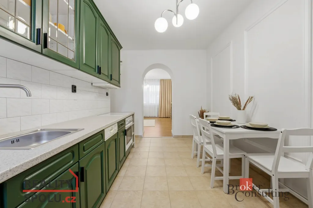 Byt je částečně zrekonstruovaný – proběhla renovace podlah, výmalba stěn, modernizace koupelny a toalety. Kuchyň je dřevěná, zhotovená truhlářem a nyní bude ještě doplněna o novou pracovní desku a dřez. V bytě jsou nová plastová okna. Jedna z místností je průchozí, celý byt působí velmi světlým a vzdušným dojmem. Výhodou je také orientace – do bytu během dne nepraží přímé slunce, což zajišťuje příjemnou teplotu i v letních měsících.