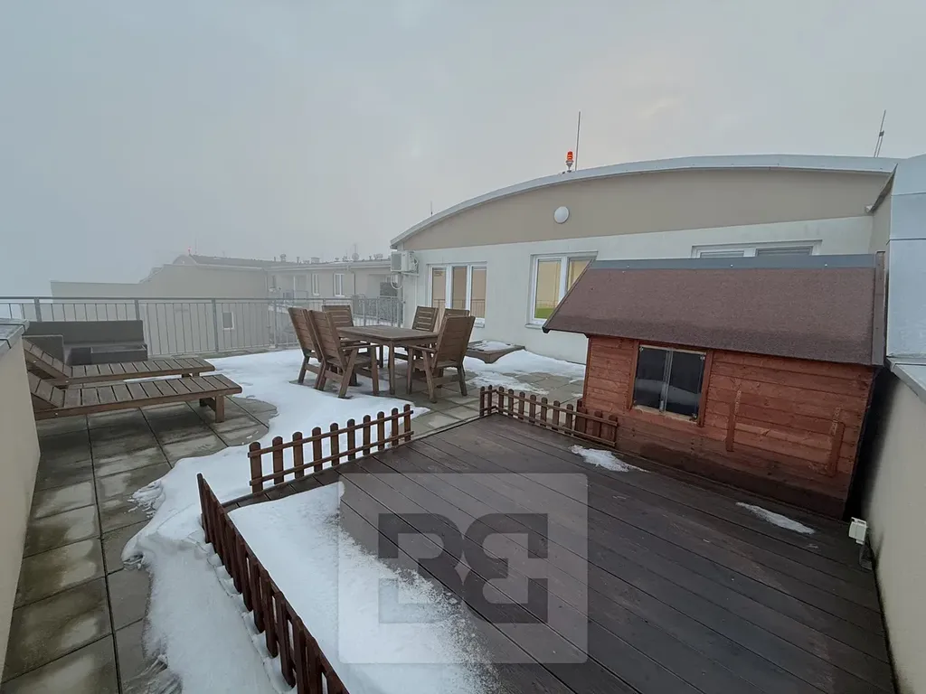 Nabízíme k pronájmu krásný, světlý byt 3+kk o velikosti 63m², situovaný v nejvyšším patře pečlivě udržovaného bytového domu na kraji Klecan. Dominantou bytu je obrovská 64m2 terasa s platformou pro vířivku. K bytu náleží venkovní parkovací stání a úložná komora přímo na patře bytu.