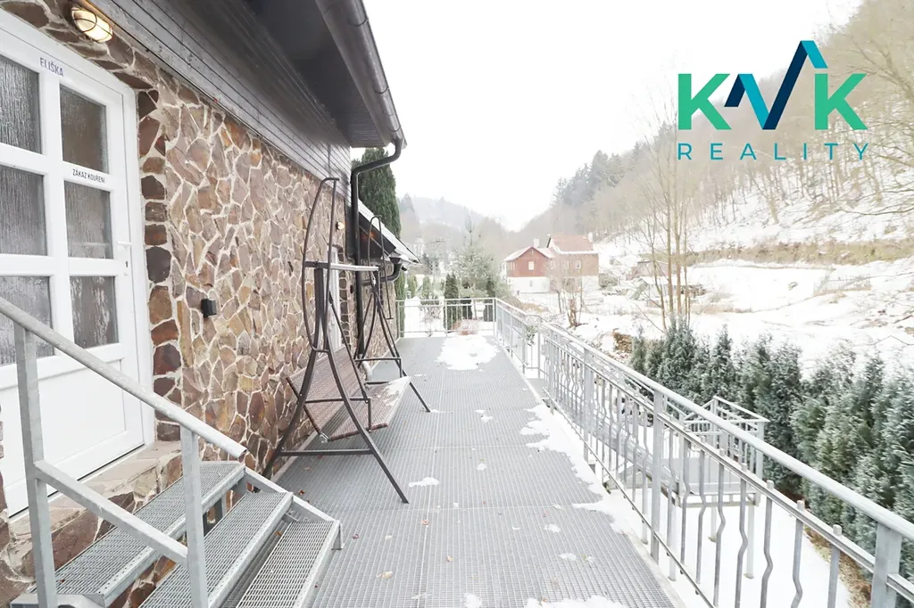 Nabízíme k prodeji stylový apartmánový dům situovaný v klidné části obce Údolí, ideální jak pro vlastní rekreaci, tak jako investiční příležitost pro krátkodobé i dlouhodobé pronájmy. Nemovitost je zasazena do krásné okrasné zahrady a zaujme především svým přírodním charakterem, použitím dřeva, kamene a přiznaných trámů.
