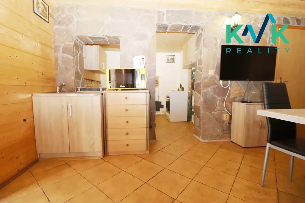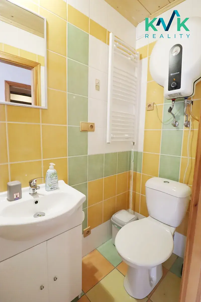 Dispozice: hlavní obytná místnost/ložnice s dvoulůžkem, koupelna se sprchou, WC, místo pro pračku.