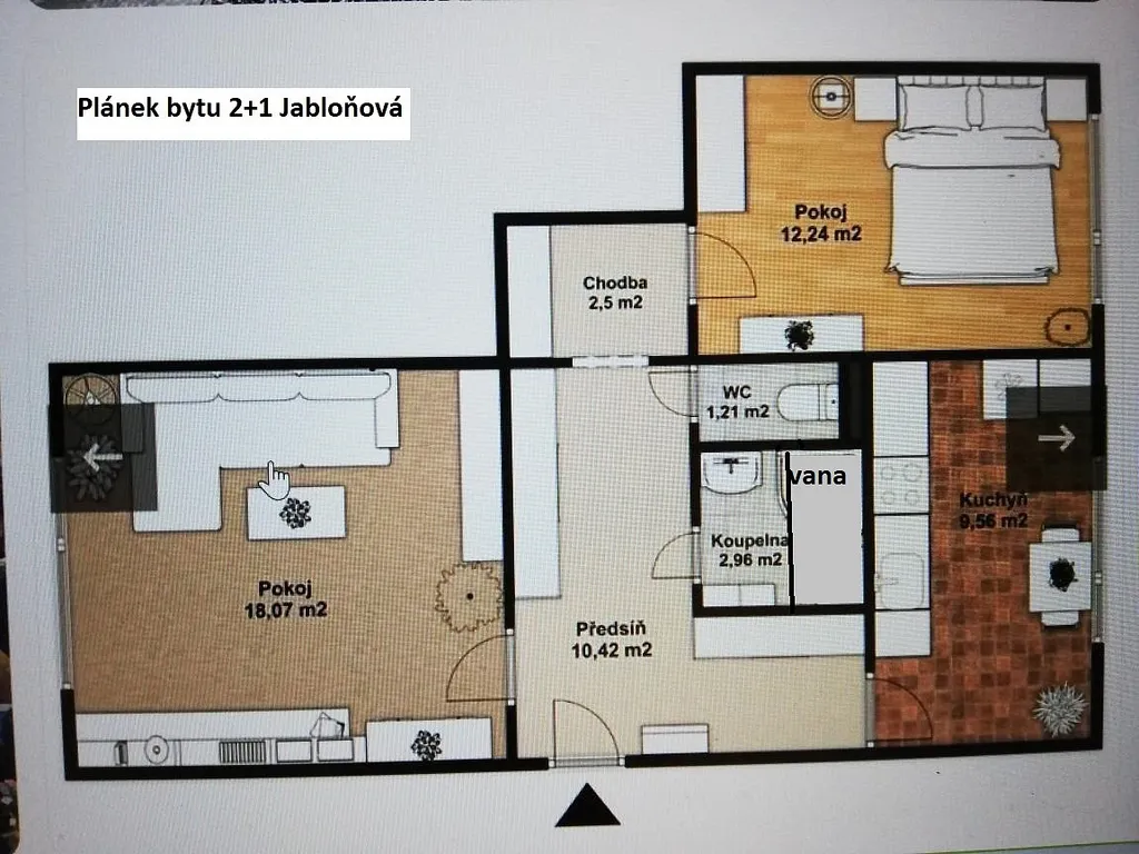 Pronájem bytu 2+1 v Liberci, ulice Jabloňová