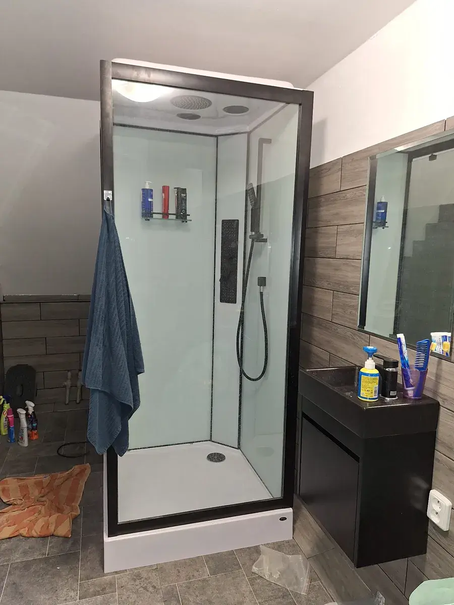 Součástí domu jsou dvě plnohodnotné koupelny, každá vybavena vanou i sprchovým koutem, což zajišťuje maximální komfort i pro větší rodinu. V obývacím prostoru je umístěn krb, který nejen vytváří příjemnou atmosféru, ale zároveň slouží jako efektivní doplňkový zdroj vytápění.