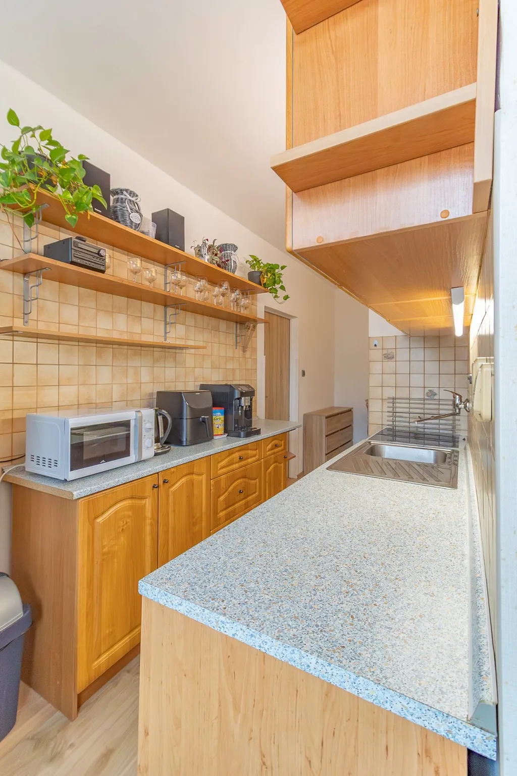 K bytu náleží komora v mezipatře domu. Dům je celý po rekonstrukci – zateplení fasády a střechy, nové vchodové dveře, zvonkové tablo, poštovní schránky. Měsíční platby spojené s užíváním bytu: 12.000,-Kč + zálohy na energie (vodné, stočné, teplo cca 3.500,-Kč/2os.) + zálohy na el. energii. Vratná kauce 24.000,-Kč. Byt je bez zařízení, pouze s kuchyňskou linkou včetně sporáku. Parkování možné přímo u domu. Zájemci, nekuřáci, bez domácích mazlíčků. Dům se nachází v klidné lokalitě, v těsné blízkosti centra města Sušice, lesoparku Luh, nového bazénu, zimního stadionu, tenisového a dětského hřiště.