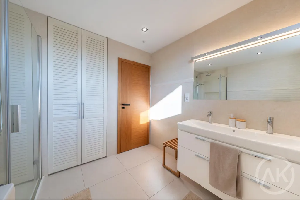 Až vás to uvnitř omrzí, vyběhnete přes HS portál na terasu a skočíte si do bazénu. Ten je krytý a vyhřívaný, takže sezona klidně od března do listopadu. Pergola je hliníková, bioklimatická, s výhřevem i zabudovaným osvětlením.