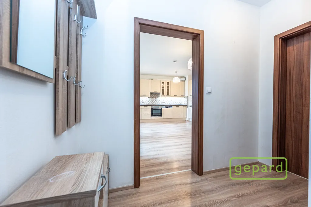 Realitní společnost Gepard Vám nabízí k pronájmu byt 3+kk v novostavbě projektu Rezidence Zámecký Dvůr v centru Brandýsa nad Labem, v těsném sousedství zámecké zahrady a v blízkosti řeky Labe. Celý areál je oplocen a přístupný pouze rezidentům. Byt o podlahové ploše 67 m2 s terasou 5,5 m2 a předzahrádkou cca 10 m2 je vybaven zakázkovou kuchyňskou linkou s vestavnými spotřebiči vč. myčky a lednice s mrazákem. Podlahové krytiny tvoří kombinace keramické dlažby a kvalitní laminátové podlahy. V koupelně je vana, umyvadlo a prostor na pračku. Toaleta s malým umývátkem je samostatná. Vytápění je centrální plynovou kotelnou. Příslušenstvím bytu je sklep 2 m2. Garážové stání k tomuto bytu je možné pronajmout přímo v suterénu domu za cenu 2.000 Kč/měsíc. Nájemné 22.500 Kč/měsíc, měsíční zúčtovatelné zálohy spojené s užíváním bytu činí 4.500 Kč + elektřina, která se přepisuje na nájemníka. Kauce je ve výši dvou měsíčních nájmů 45.000 Kč, provize ve výši nájmu vč. poplatků. Ve městě Brandýs nad Labem - Stará Boleslav najdete kompletní občanskou vybavenost, široké možnosti sportovního vyžití i pobytu v přírodě, koupání, cyklistika, turistika a zároveň tato lokalita poskytuje perfektní dopravní spojení a rychlou dostupnost do Prahy.