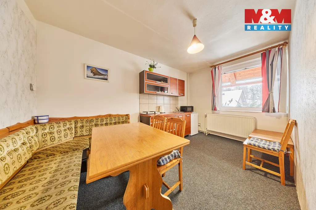 Nabízíme k prodeji prostorný rodinný dům v klidné části obce Horní Maršov. Jedná se o dům s dvěmi č.p. Jedna polovina se využívá jako rodinný dům s kuchyní a jídelnou v 1 NP pro pension. Druhá polovina je využívána jako pension pro 18 hostů v 6ti pokojích. Pension má zavedenou klientelu. Vytápění horkovodem, ohřev teplé vody třemi bojlery, Voda z veřejného vodovodu a odpady jsou svedeny do kanalizace. Zavedený internet. Zahrada je oplocená a udržovaná. Pro klienty je připravený vyhřívaný bazén, terasa k odpočinku. Garáž je pro dvě auta, dílna a skladový prostor. Parkovací stání pro 5 aut. Nemovitost je ve velmi dobrém stavu a je připravena k okamžitému nastěhování. Pokud hledáte klidné bydlení s podnikáním v malebné lokalitě, je tato nabídka ideální právě pro vás. Občanská vybavenost a dostupnost je velmi dobrá, škola a školka v místě. Obchody, pošta také.