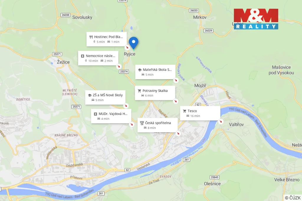 Pozemek v pěkné a klidné obci Ryjice o celkové rozloze 1648 m2, skládající se ze dvou parcel, Vám určitě stojí za domluvení prohlídky. Převážně rovinatý a současně zarostlý pozemek, přístupný z obecní cesty, je vhodný po odstranění dřevin, k chovu domácího zvířectva, koní, ovcí a k využití dle dalšího vlastního záměru. Pro možnost stavby k rekreačnímu, či rodinnému bydlení si musí nový majitel zažádat o změnu územního plánu (ÚP). Pozemky jsou v současné době dle platného ÚP v nezastavitelném území obce. Inženýrské sítě, jako je voda, elektřina a kanalizace je k připojení pod příjezdovou cestou. V obci se nachází zastávka MHD, dětské hřiště, obecní úřad i kulturní sál. Veškerá občanská vybavenost se nachází v blízké obci Neštěmice. Okolí nabízí krásné výhledy do přírody a možnost procházek v blízkosti lesů a k různým turistickým cílům například k nedaleké zřícenině hradu Blansko.