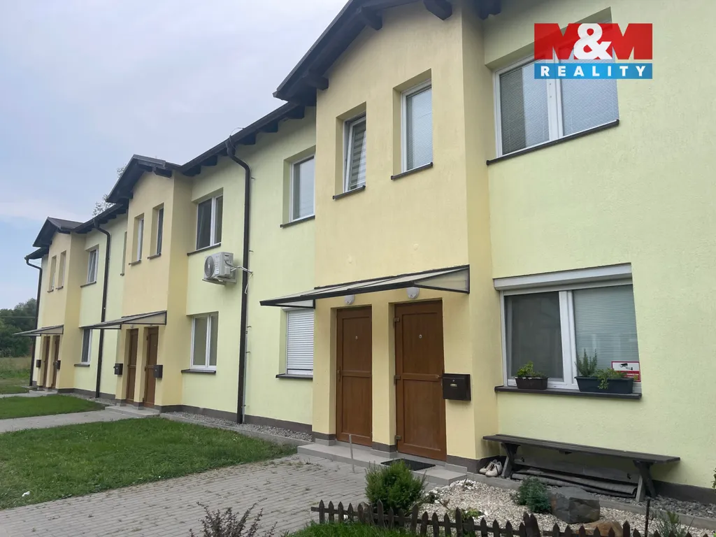 Byt je součástí malého bytového domu o dvou podlažích. V sousedství najdete další dva stejné domy, což znamená minimum sousedů a víc soukromí. V okolí převažuje zástavba rodinných domů, dům obklopují louky, cyklostezka, nedaleko teče řeka-to vše navozuje pocit vesnického bydlení.