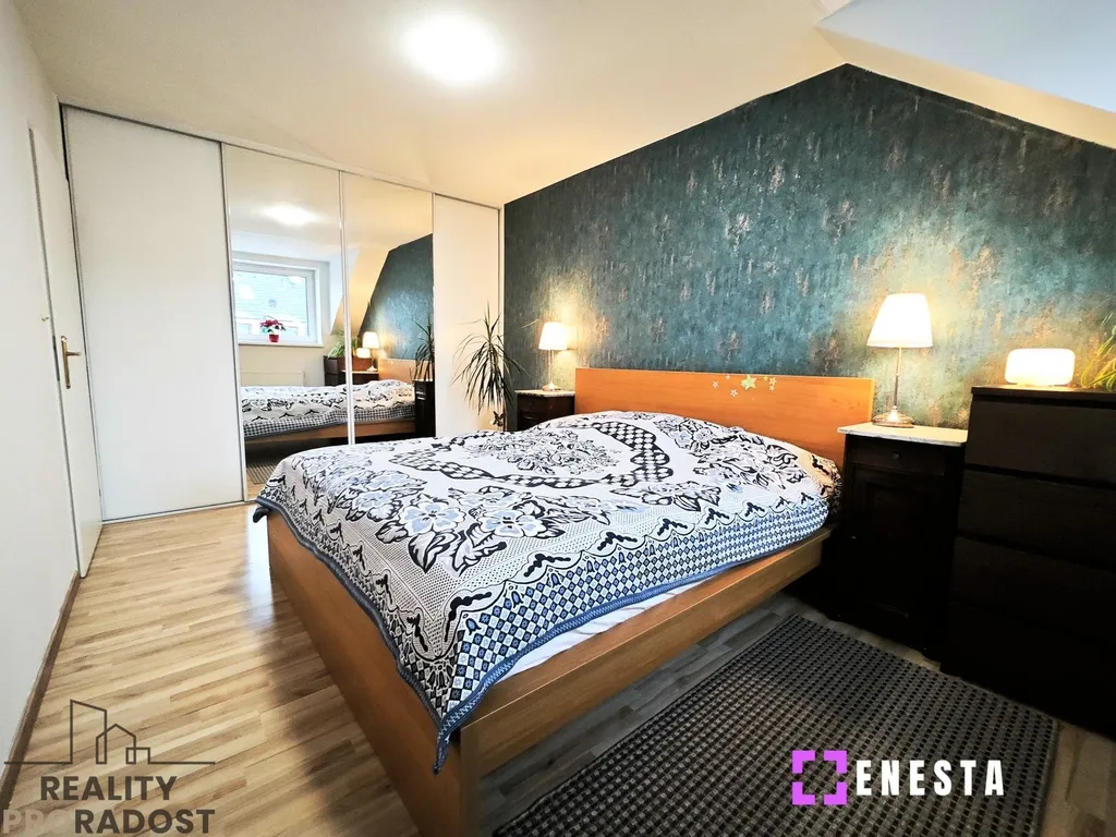 Klidová zóna se nachází v prvním patře, kde najdete hlavní ložnici s velkou vestavěnou skříní, dětský pokoj s klimatizací a menší pokoj, který skvěle poslouží pro hosty nebo jako pracovna. Chodba je chytře využita pro další vestavěnou skříň, která plní funkci šatny. Komfortní zázemí poskytuje velká koupelna vybavená vanou, sprchovým koutem, toaletou i bidetem. Pokud by vám tento prostor nestačil, v podkroví na vás čeká další velkorysá místnost o ploše 25 m², která v současnosti slouží jako kombinace ložnice a pracovny, ale její využití záleží jen na vašich potřebách.