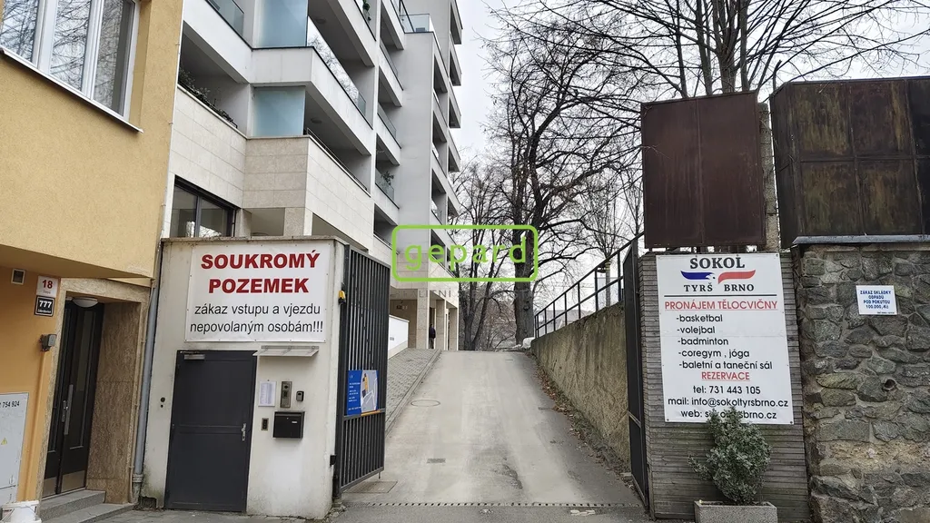K bytu náleží sklepní kóje a vyhrazené parkovacího stání v suterénu domu. Vjezd do garáže je vyhřívaný, vjezdová brána ovládaná mobilem nebo dálkovým ovladačem.