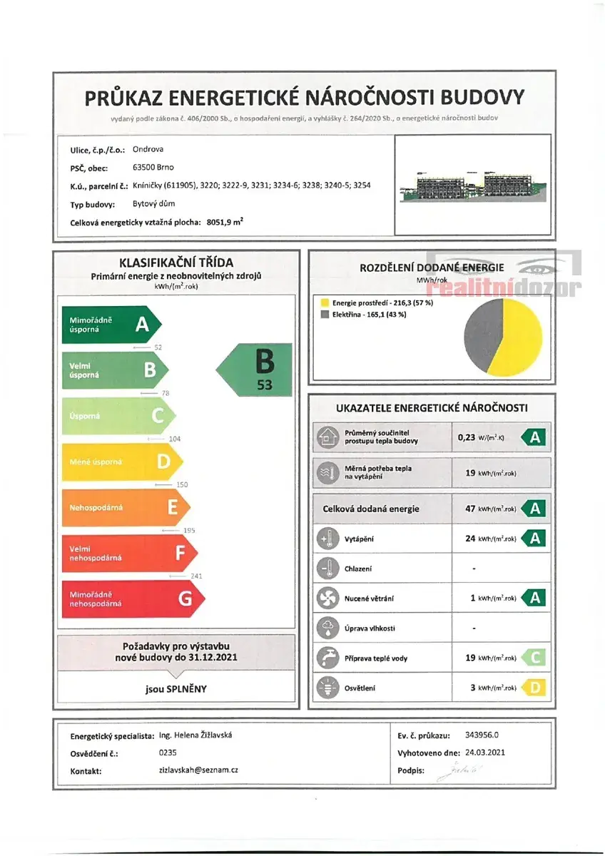 Technické informace k domu: Nízkoenergetický dům (PENB B), Tepelná čerpadla, fototermika, elektrický kotel, Bezpečný vstup do domu. Byt disponuje rekuperační jednotkou.