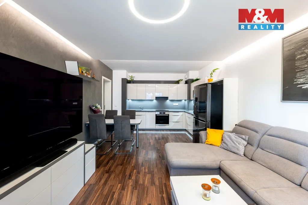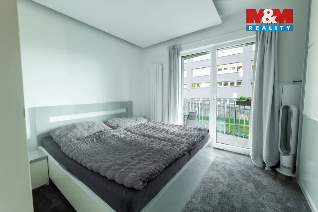 Byt nabízí praktickou dispozici: obývací pokoj s kuchyňským koutem, ložnici, další pokoj, koupelnu s vanou a samostatné WC. Vstup na balkon je ze všech místností, což zajišťuje dostatek světla a příjemné propojení s venkovním prostorem. Interiér je moderní, vybaven kvalitními spotřebiči a designovým LED osvětlením.
