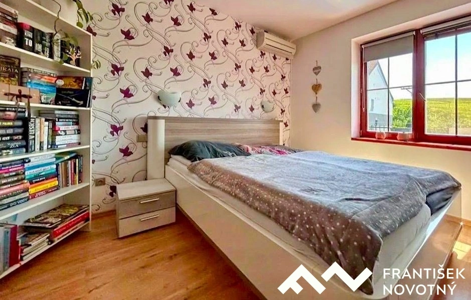 Dispozice: vstupní chodba, pracovna, koupelna s vanou i sprchovým koutem, samostatné WC, prostorný obývací prostor s kuchyní a jídelnou se vstupem na terasu, klimatizovaná ložnice, dětský pokoj.