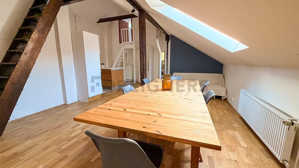 Nabízíme k pronájmu výjimečný podkrovní byt o celkové ploše cca 140 m², který zaujme svou vzdušností, světlem a nadstandardním prostorem. Byt je vhodný jak pro komfortní bydlení, tak i pro kombinaci bydlení a práce.