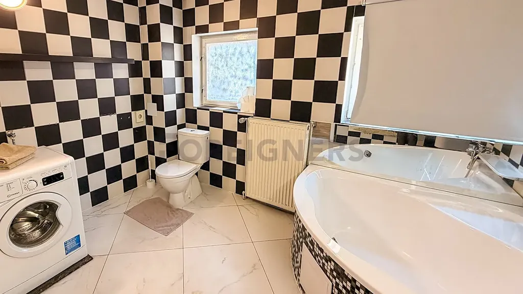 - velký obývací prostor s kuchyní- 2,5 koupelny (koupelna s vanou, WC a pračkou, samostatná koupelna se sprchovým koutem, oddělené WC)