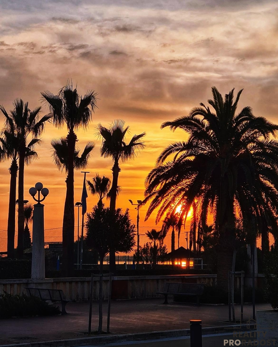 Jedinečná příležitost s bočním výhledem na moře a možností příjemného posezení na balkoně. Apartmán o velikosti 64m² se nachází v druhém patře malé budovy plně zařízený s klimatizací a obsluhovaný výtahem. Villa Rosa je přezdívána „palmová riviéra“ – nabízí dlouhé pobřežní promenády obklopené palmami a příjemnou přímořskou atmosféru. Možnost dokoupení garáže a soukromého parkovacího stání.