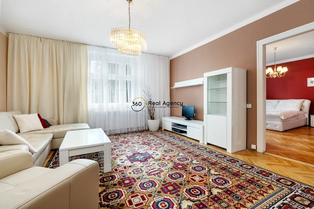 Zachovalé dřevěné parkety, vysoké stropy a okna na dvě světové strany vytvářejí výjimečnou atmosféru bytu s duší. Prostor je světlý, vzdušný a působí velmi klidně – ideální jak pro rodinu, tak pro náročného jednotlivce.