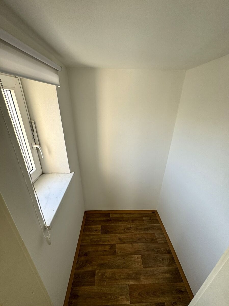 Kuchyň je vybavena rohovou kuchyňskou linkou na míru včetně spotřebičů: sklokeramická deska, elektrická trouba, digestoř, myčka, lednice. Z kuchyně se dostaneme na balkon a do menší místnosti, která může sloužit jako komora.
