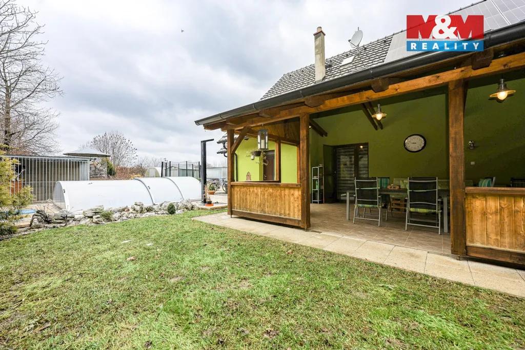 Nabízíme prodej prostorného a velmi útulného rodinného domu na pozemku s rozlohou 762 m² v klidné části obce Kučerov s užitnou plochou cca 150 m². Dispozice zahrnuje dvě nadzemní podlaží, kde spodní patro nabízí kuchyň s obývacím prostorem, příjemnou zimní zahradu s topnými panely, technickou místnost a samostatné WC. Samozřejmostí je i garáž. Horní patro nabízí tři samostatné pokoje, koupelnu, šatnu a další WC. Z dětských pokojů je vstup na velkou terasu. Celý dům má podlahové topení, bojler pro ohřev vody a fotovoltaiku. Z obývacího pokoje je přímý vstup na zastřešenou pergolu, která je obohacena o posezení, gril a udírnu. Pozemek, díky velikosti, je ideální na udržování, ale i pro vlastní zahradničení. Součástí je i zastřešený bazén a kůlna. Pokud hledáte klidné místo s výbornou dostupností a příjemnou atmosférou, pak je tato nabídka určená právě Vám. Pro více informací či prohlídku kontaktujte makléřku nabídky. Zajistíme nejvýhodnější financování. Budeme se na Vás těšit.