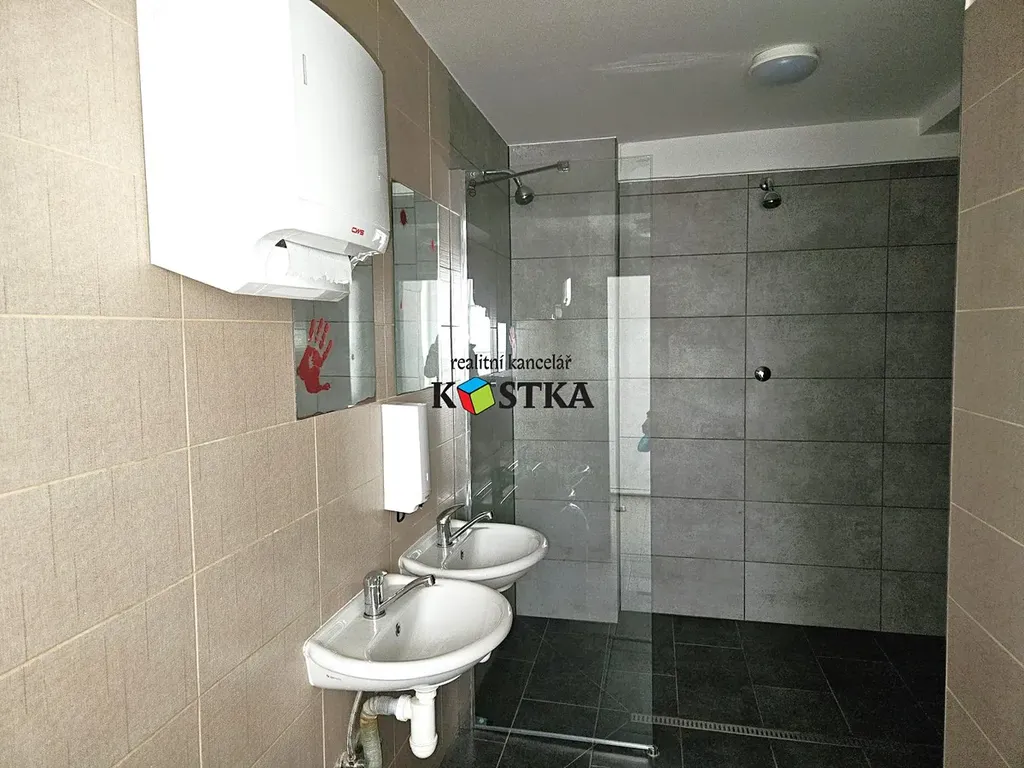 Navazující část stavby s komerčními prostory je skeletového typu a její současná využitelná plocha je cca 2500 m2 ve dvou podlažích - prostory jsou rozděleny mobilními příčkami a sádrokartonovými stěnami - dispozici je tak možné měnit dle potřeby. V minulosti byly prostory využívány k pronájmu - byla zde provozována cukrárna, laser aréna, taneční studio, obchody a kanceláře. V budově jsou nově vybudovány toalety, sprchy, šatny - není tak problém provozovat zde třeba fitko, restauraci, či ordinace lékařů......