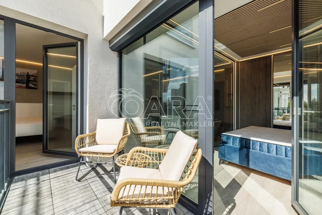 Nabízíme Vám k pronájmu nadstandardně vybavený byt o dispozici 3+kk s balkonem, garážovým stáním a možností využívat privátní zahradu ve vnitrobloku určenou pro rezidenty domu.