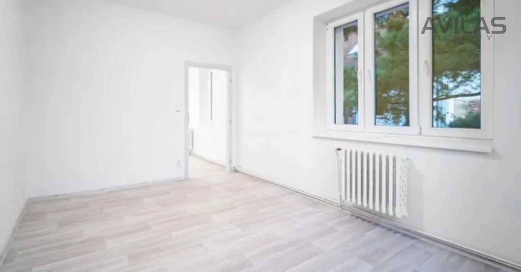 Byt má praktickou a prostornou dispozici: vstupní chodba, samostatné WC, koupelna, kuchyňský kout, obývací pokoj a dva samostatné pokoje.